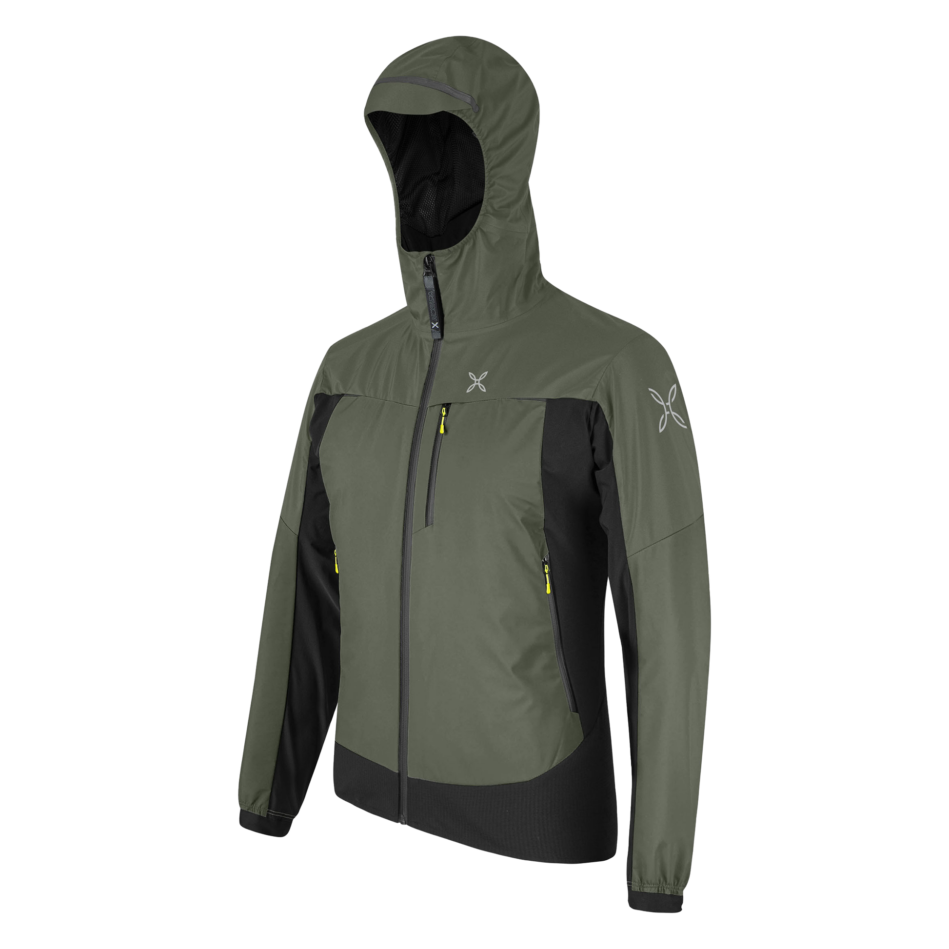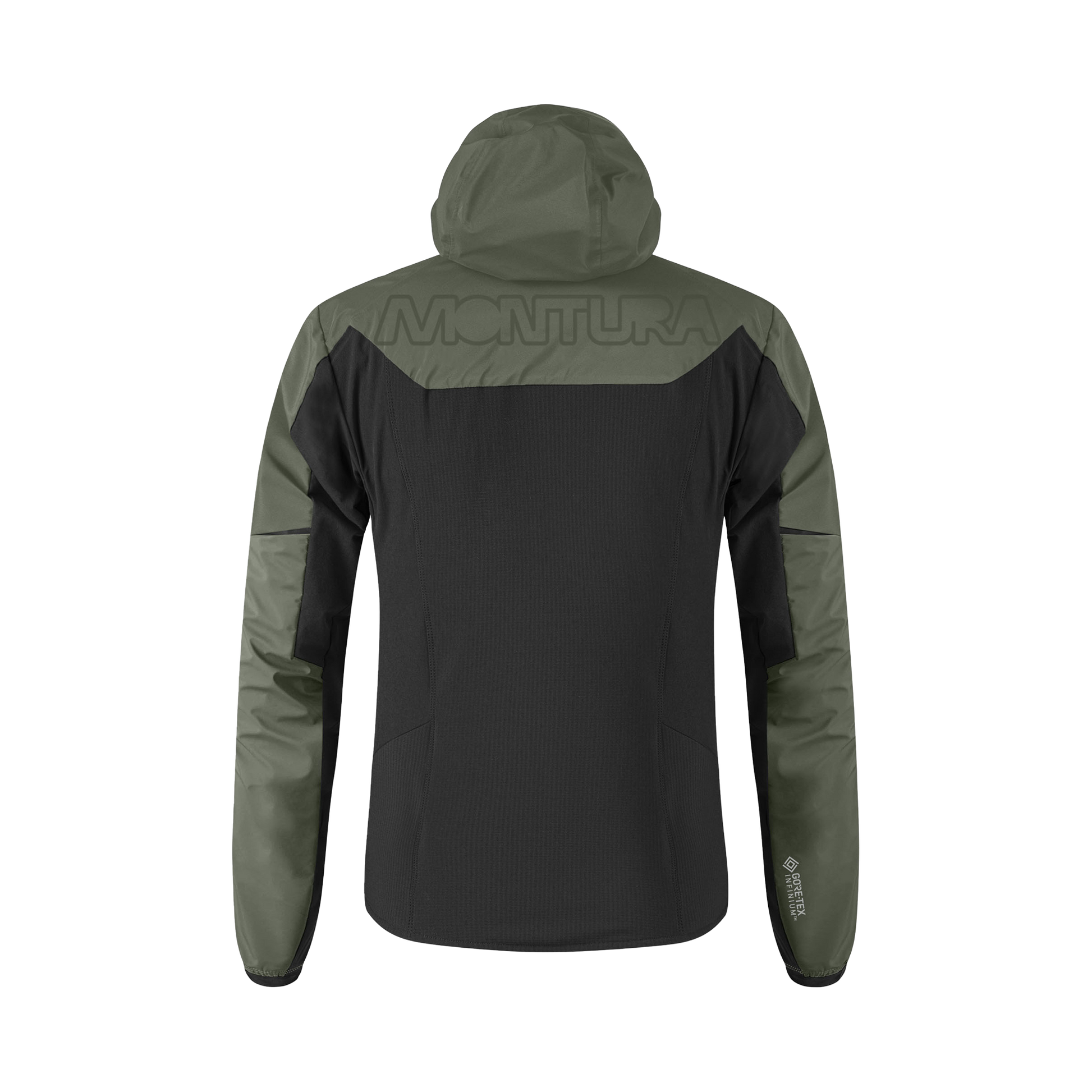• Vorne, Schulter und Kaputze in 3-lagiges GORE-TEX-Nylongewebe mit Membran 28K/<9 RET