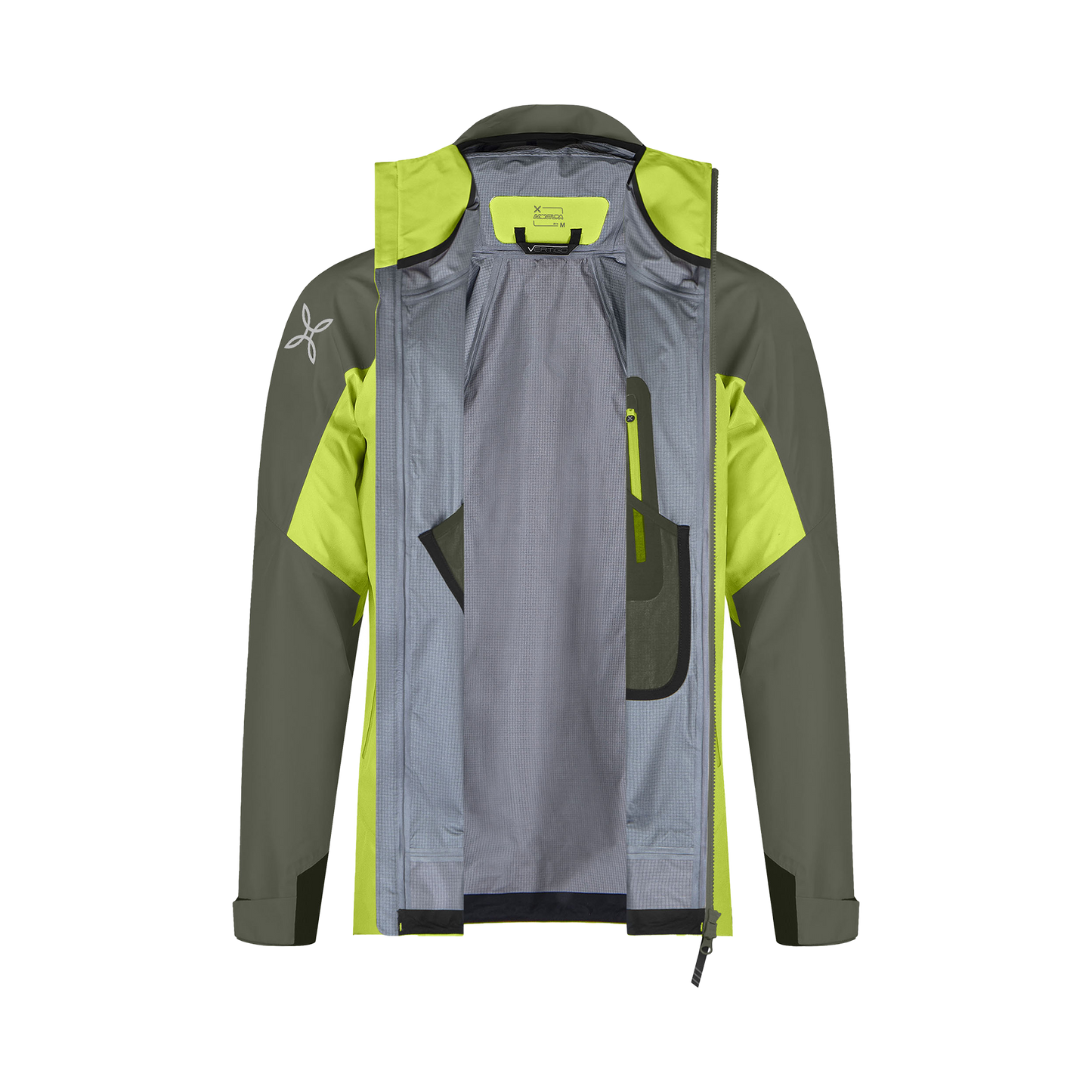 Tessuto GORE-TEX PRO a 3 strati in poliammide 6.6 (118 g/mq), con costruzione tela ed aspetto opaco. Fornisce eccellente impermeabilità (28.000 mm water column), traspirabilità (RET < 6) ed idrorepellenza, asciuga rapidamente ed è facile da pulire. Offre elevata resistenza all'usura e garantisce impermeabilità permanente. ANTIUV: UPF50+.