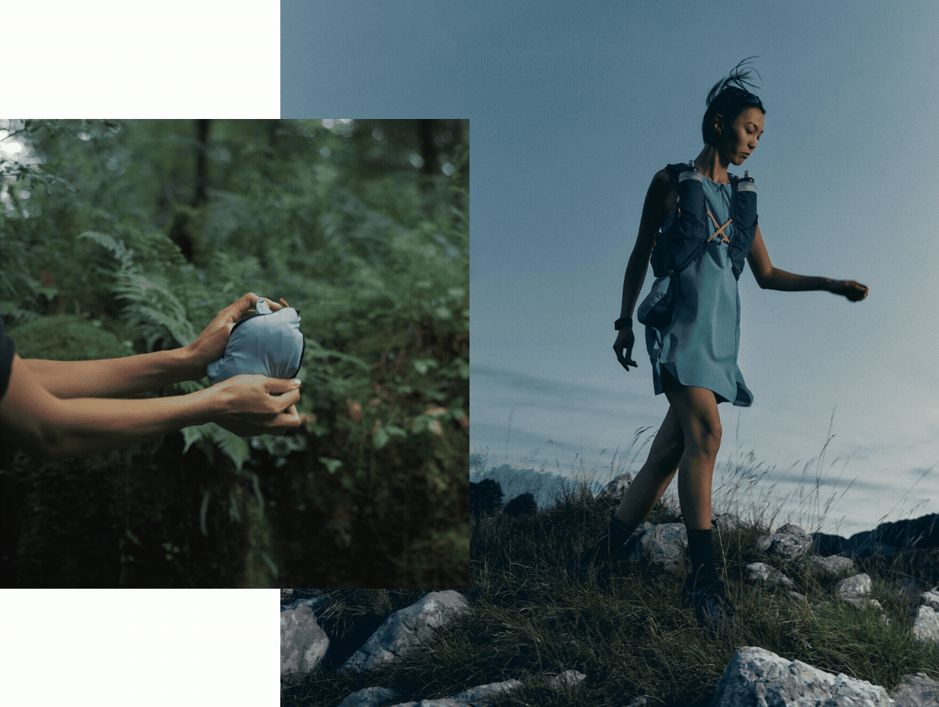 The collection is compact, lightweight, easy to pack — each item folds down in seconds, takes up minimal space, and proves useful in endless situations. These are garments that don’t dictate a lifestyle, easy to care - they fit into yours.