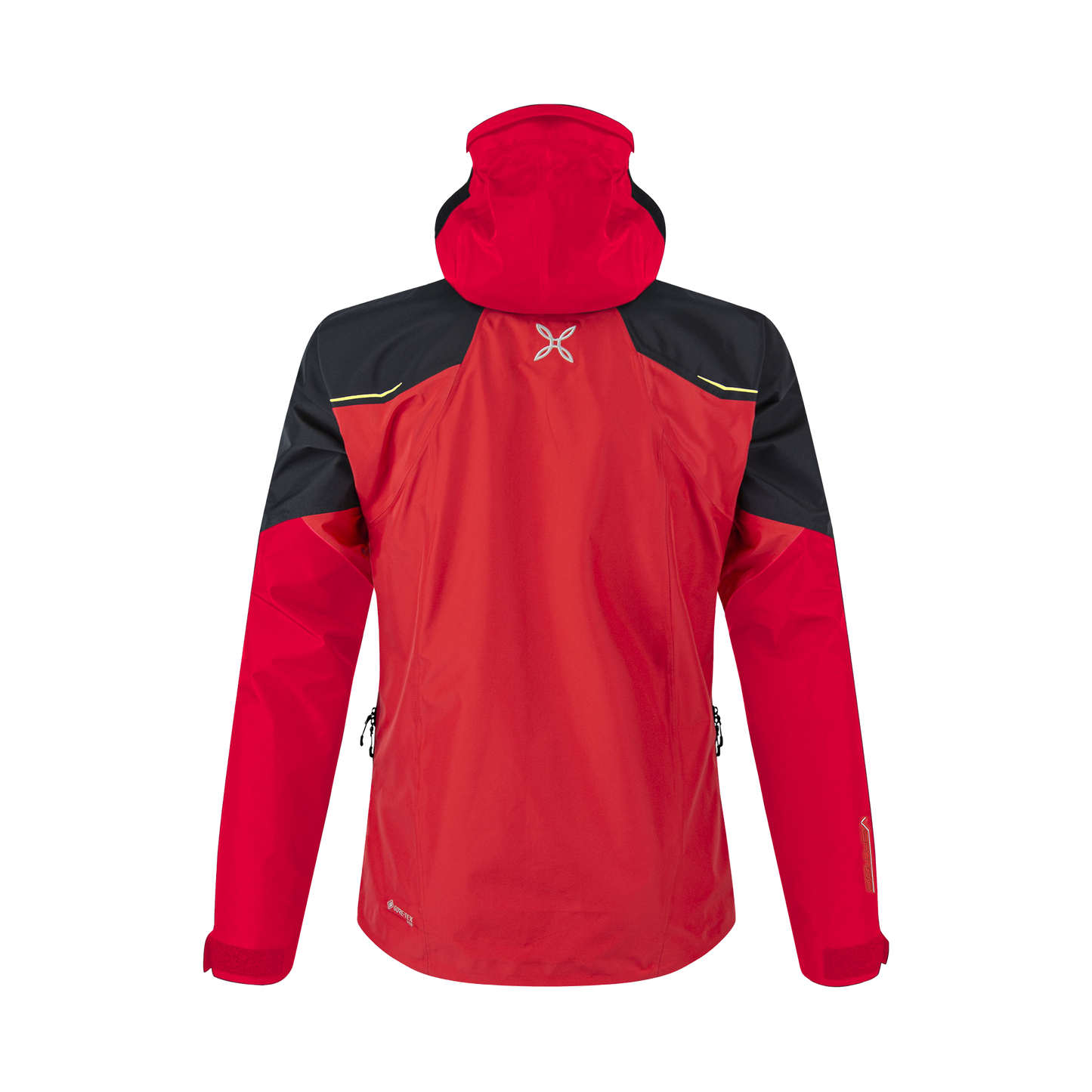 3-layer polyamide 6.6 GORE-TEX PRO fabric (118 g/sq.m) with a plain construction and matte look. Excellent waterproofing (28,000 mm water column), breathability (RET< 6) and water-repellent properties, it dries quickly and is easy to clean. It offers excellent abrasion resistance and is guaranteed to be permanently waterproof. ANTIUV: UPF50+.