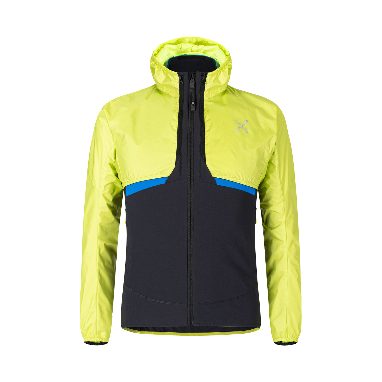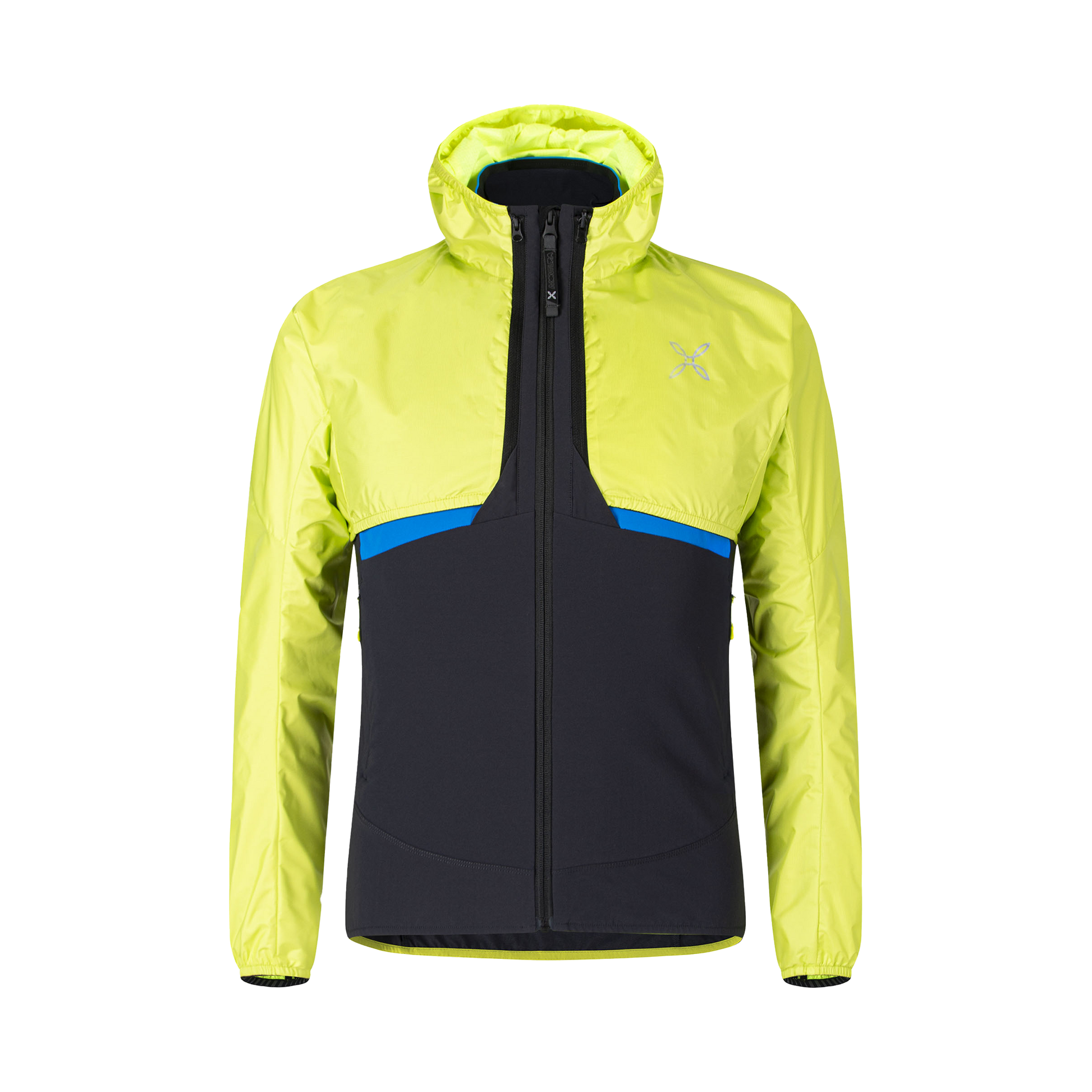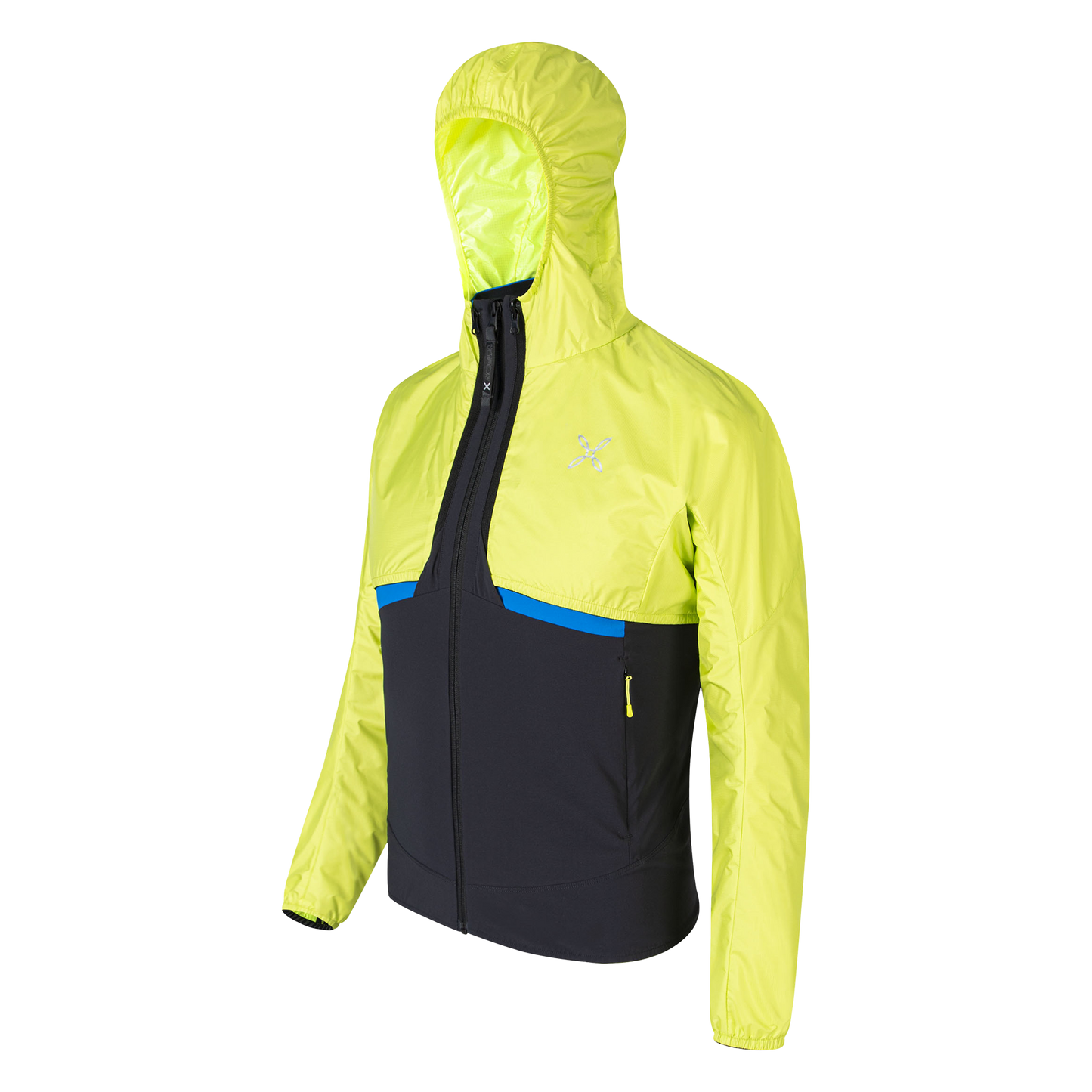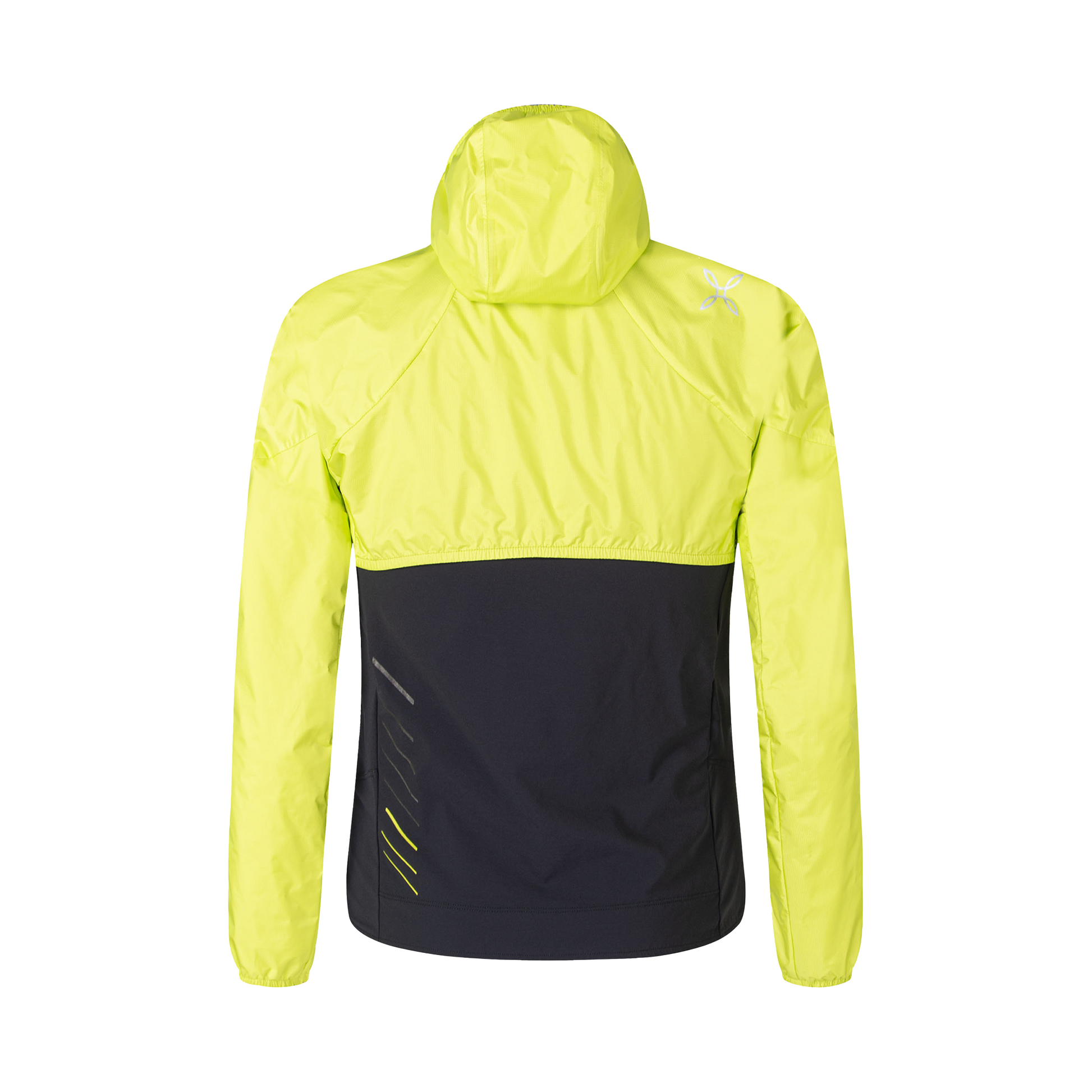 2-layer super-light nylon fabric (61 g/sq.m) laminated with an ultra-thin windproof waterproof (15,000 mm water column) and breathable (15,000 g/sq.m/24h) polyurethane membrane. The high-density construction of the fibres guarantees excellent mechanical performance and abrasion resistance. The DWR coating guarantees long-lasting performance, even after numerous washes. ANTIUV: UPF50+.